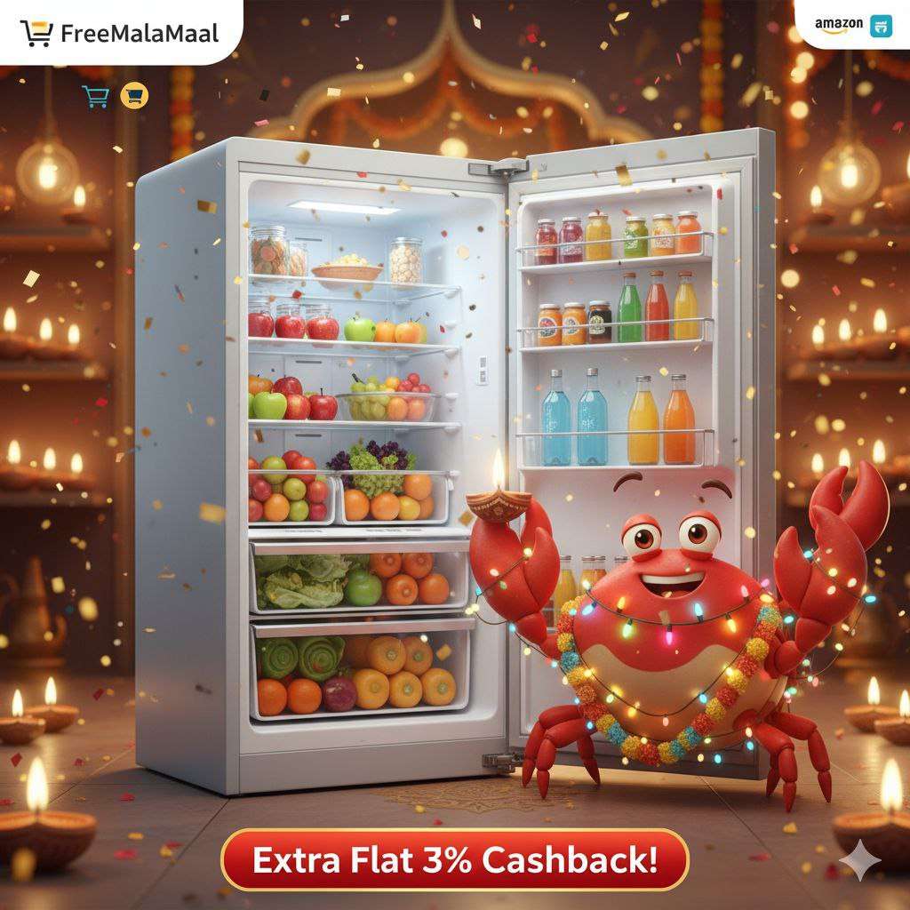 This Diwali, Crab Dada brings you exciting Amazon festive offers with extra cashback! On FreeMalaMaal, get flat 3% cashback on ACs, Refrigerators, Laptops, Washing Machines, and LED TVs, and flat 4% cashback on Cameras. Many other categories also have attractive cashback deals. Shop your favorite products and enjoy smart savings along with festive shopping fun. With Crab Dada, shopping this Diwali is more rewarding than ever!
